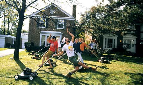 We've a reasonable sized garden and our old electric mower's died. Do I go for another plug-in or for a petrol model as my father suggests. Do eco-friendly push mowers that require you to rake up the grass work? Ideally I'd borrow one twice a month, but where from?